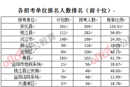 二、益陽(yáng)公務(wù)員報(bào)名人數(shù):各招考單位分析