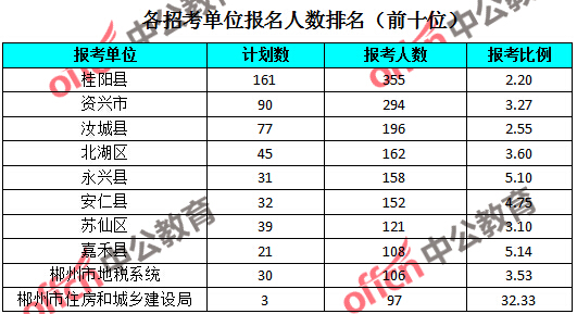 二、湖南郴州公務(wù)員報名人數(shù):各招考單位分析