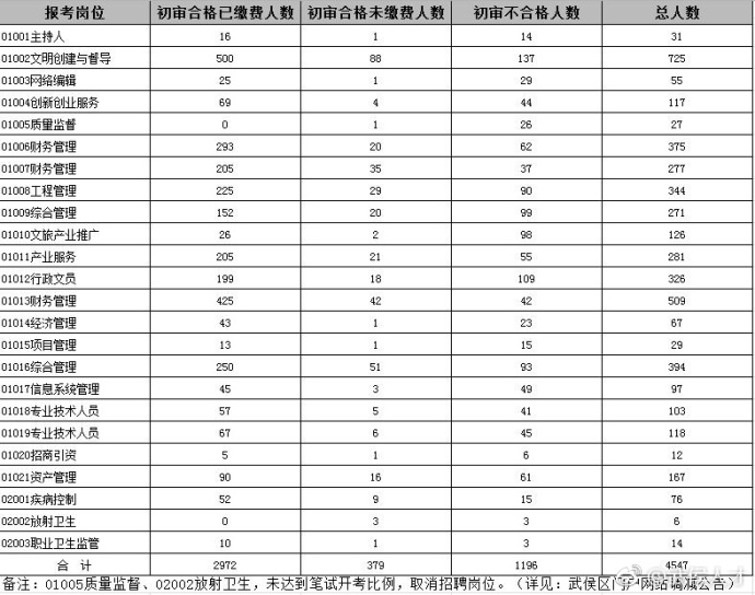 報考總?cè)藬?shù):4547 初審合格已繳費有效人數(shù):2972
