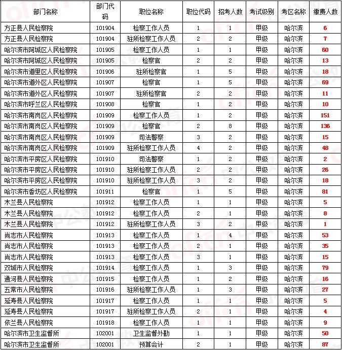 【哈爾濱】2014年黑龍江省公務(wù)員考試?yán)U費(fèi)人數(shù)統(tǒng)計(jì)(5月19日)