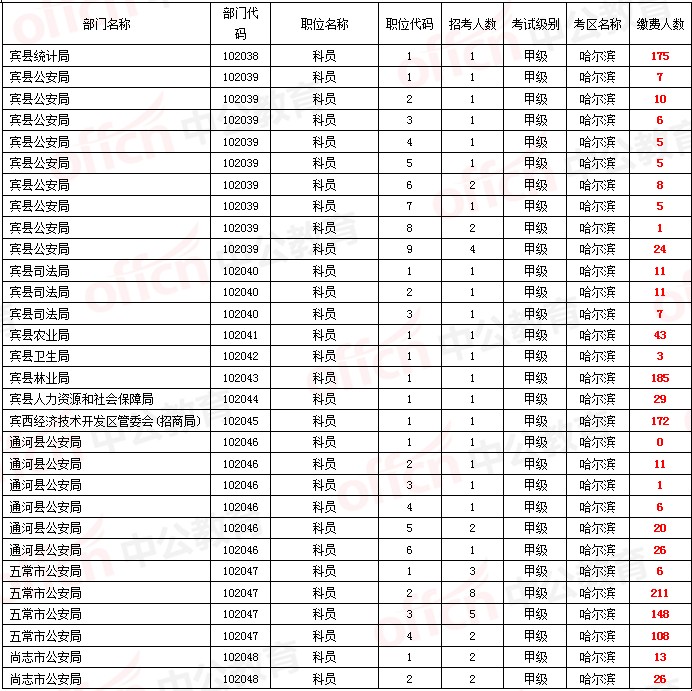 【哈爾濱】2014年黑龍江省公務(wù)員考試繳費人數(shù)統(tǒng)計(5月19日)