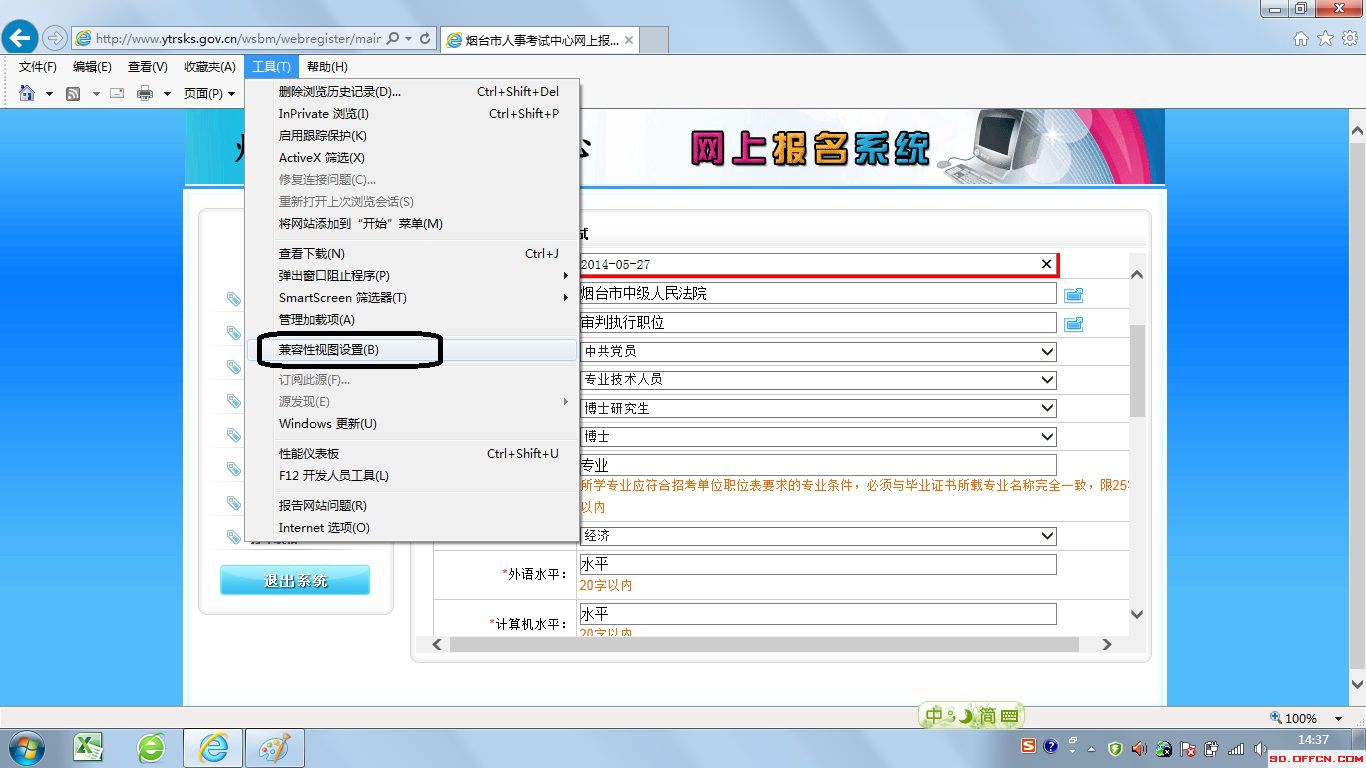 2014年山東省煙臺(tái)公務(wù)員關(guān)于網(wǎng)上報(bào)名部分瀏覽器日期報(bào)錯(cuò)的解決方法