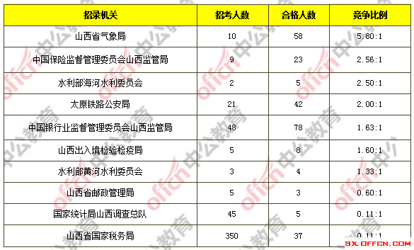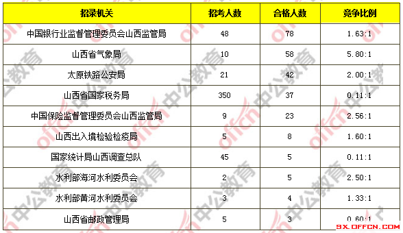 為幫助廣大考生更清晰的了解今日?qǐng)?bào)名情況,山西中公教育整理了審核通過人數(shù)前十位的部門以及競(jìng)爭(zhēng)比例最激烈的十大部門,供廣大考生參考: