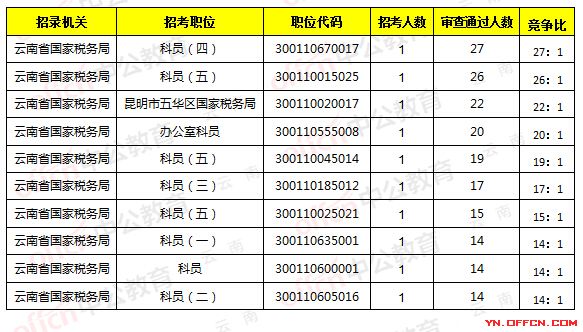 云南省國(guó)稅局職位報(bào)名人數(shù)分析