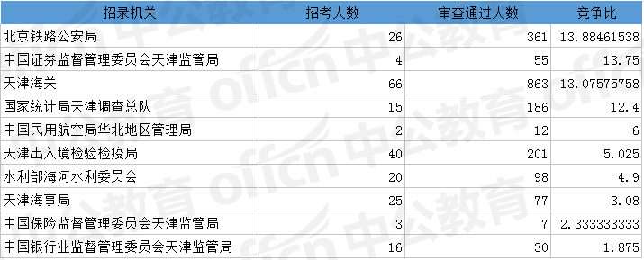 截止到1日16時(shí),通過審核人數(shù)前三位的部門依次是:天津海關(guān)、北京鐵路公安局、天津市國家稅務(wù)局,三部門通過審核總?cè)藬?shù)達(dá)1569人。