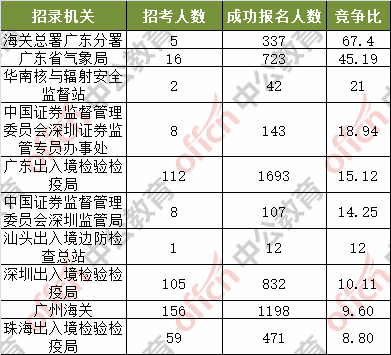 截止到1日16時(shí),通過審核人數(shù)前三位的部門依次是:廣東省國家稅務(wù)局、深圳海關(guān)、廣東出入境檢驗(yàn)檢疫局,三部門通過審核總?cè)藬?shù)達(dá)11309人,占通過審核總?cè)藬?shù)的61.9%。