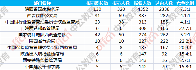 截至到1日16時(shí),通過審核人數(shù)前三位的部門依次是:陜西省國家稅務(wù)局、西安鐵路公安局、國家統(tǒng)計(jì)局陜西調(diào)查總隊(duì),三部門通過審核總?cè)藬?shù)達(dá)2882人,占通過審核總?cè)藬?shù)的73.9%。
