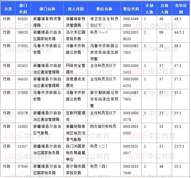 2018國考報名數(shù)據(jù):新疆3391人過審 最熱職位48:1【11月1日16時】