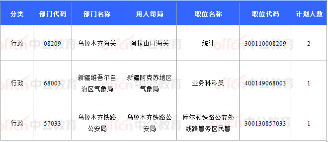 截止到11月1日16時,工作地點在新疆的職位共有65個無人報考,占全部職位的12.3%。下面是無人報考職位一覽表,中公網(wǎng)校專家建議廣大考生多關注一些較冷職位,避免激烈競爭,結合自身條件,找到屬于自己的職位。
