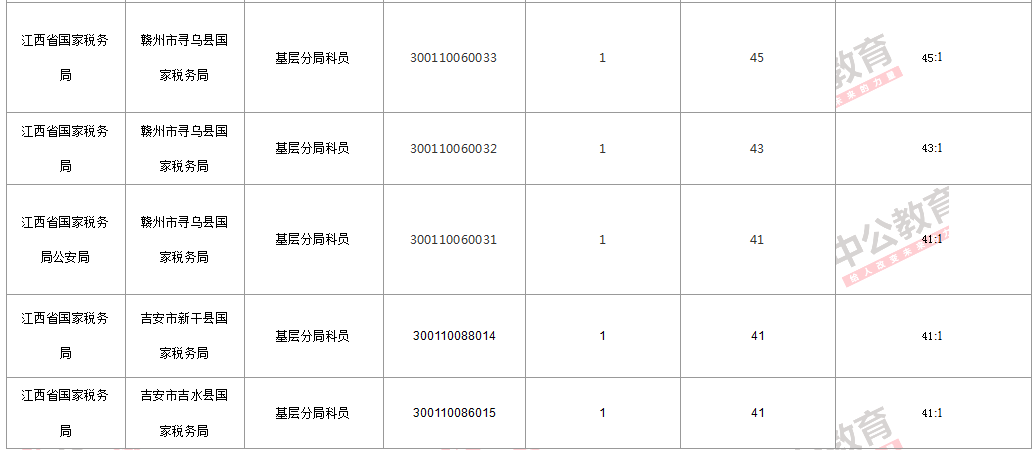 截止到1日17時(shí),競(jìng)爭(zhēng)比例的職位為江西省國(guó)家稅務(wù)局南昌市南昌縣國(guó)家稅務(wù)局一職,招錄1人,截止到1日18時(shí)通過(guò)人數(shù)為105人。