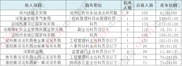 報名通過審核人數(shù)前十的職位主要集中在水利部黃河水利委員會、鄭州鐵路公安局、河南省氣象局、河南省國家稅務(wù)局,具體信息如下: