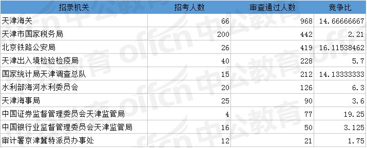 截止到2日09時,通過審核人數(shù)前三位的部門依次是:天津海關(guān)、天津市國家稅務(wù)局、北京鐵路公安局,三部門通過審核總?cè)藬?shù)達1829人。