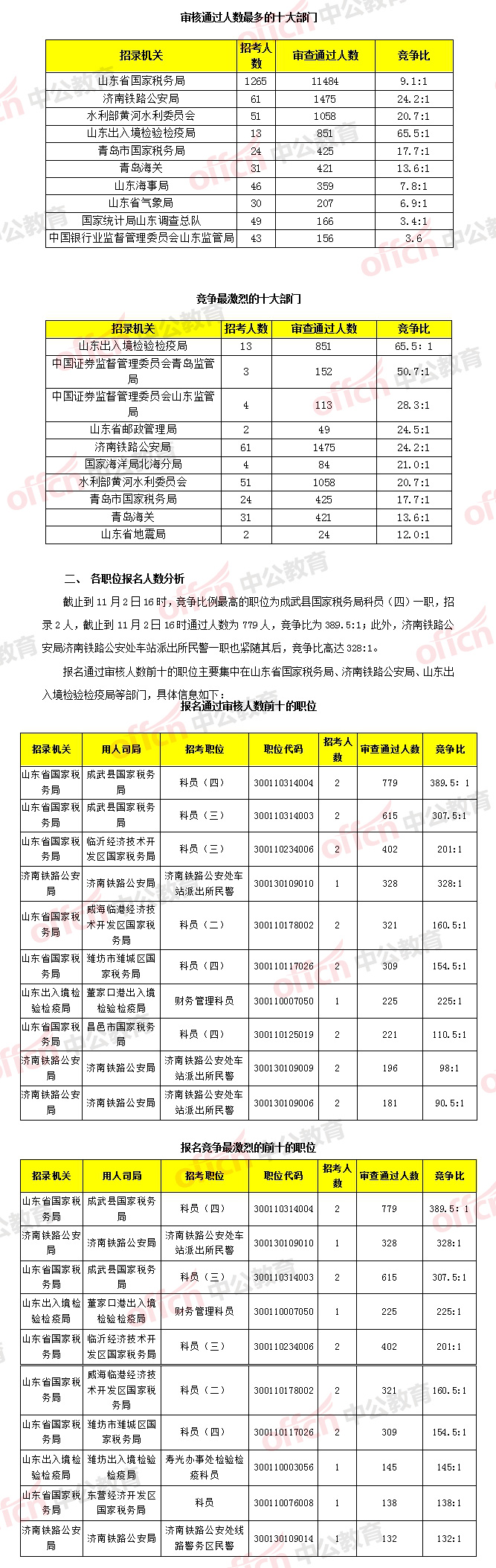 [11月2日16時]2018國考報(bào)名數(shù)據(jù):山東報(bào)名人數(shù)破2萬 17272人過審 最熱職位已達(dá)389.5:1