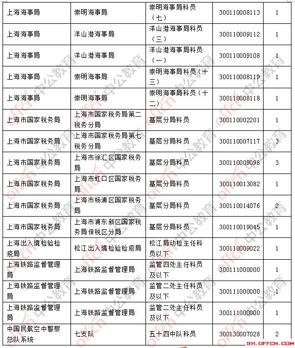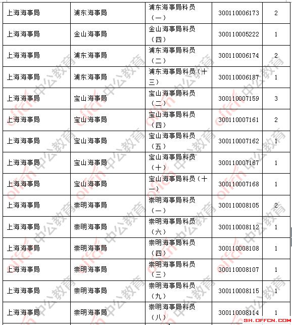 截止到2日16時,工作地點在上海的職位共有45個無人報考,占全部職位的13.93%,主要集中在上海海事局、上海市國家稅務局以及上海鐵路監(jiān)督管理局,下面是無人報考職位一覽表,上海中公教育專家建議廣大考生多關注一些較冷職位,避免激烈競爭,結(jié)合自身條件,找到屬于自己的職位。