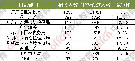 截止到2日16時(shí),通過(guò)審核人數(shù)前三位的部門依次是:廣東省國(guó)家稅務(wù)局、深圳海關(guān)、廣東出入境檢驗(yàn)檢疫局,三部門通過(guò)審核總?cè)藬?shù)達(dá)19701人,占通過(guò)審核總?cè)藬?shù)的62.2%。