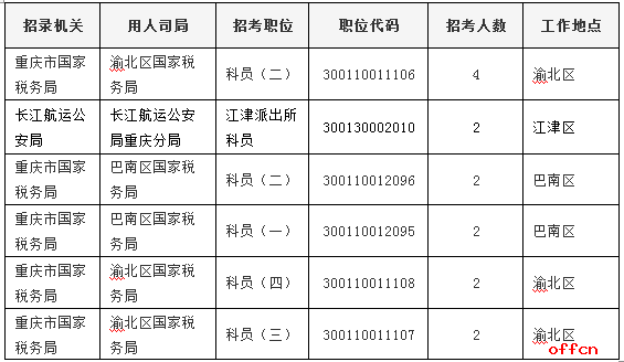 截止到11月3日16時,工作地點在重慶的職位共有18個無人報考,占全部職位的7.6%。下面是無人報考職位招錄人數(shù)較多的職位一覽表,中公網(wǎng)校專家建議廣大考生多關注一些較冷職位,避免激烈競爭,結合自身條件,找到屬于自己的職位。
