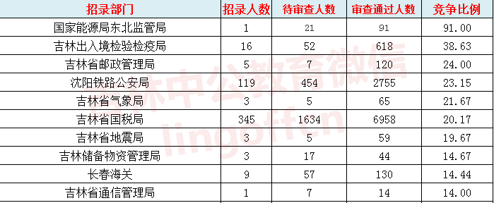 2018年國考報名已開始,本次考試吉林省共設(shè)崗位511個,計劃招收1007人。 據(jù)中公網(wǎng)校統(tǒng)計,截止11月3日16:00(報名第五天),已有13785 名考生完成報考, 其中審核通過人數(shù)為11421人。共有25個職位無人通過審核。
