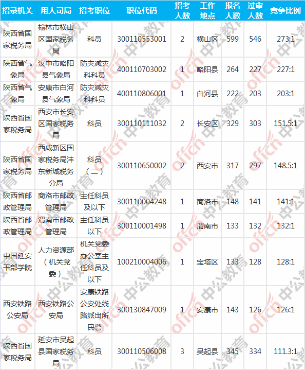[4日9時]2018國考報名數據:陜西11504人過審 最熱職位273:1