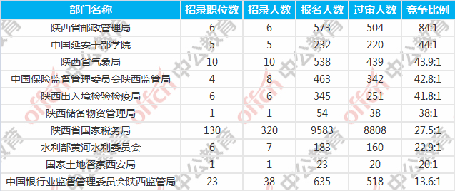 報(bào)名人數(shù)前十的職位主要集中在陜西省國家稅務(wù)局、中國保險(xiǎn)監(jiān)督管理委員會(huì)陜西監(jiān)管局、陜西省氣象局等部門,具體信息如下: