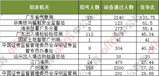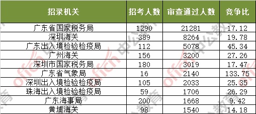 截止到4日16時(shí),通過審核人數(shù)前三位的部門依次是:廣東省國家稅務(wù)局、深圳海關(guān)、廣東出入境檢驗(yàn)檢疫局,三部門通過審核總?cè)藬?shù)達(dá)27454人,占通過審核總?cè)藬?shù)的61.2%。