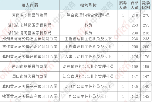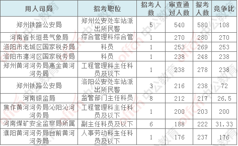 報(bào)名通過審核人數(shù)前十的職位主要集中在鄭州鐵路公安局、河南省氣象局、河南省國家稅務(wù)局,具體信息如下: