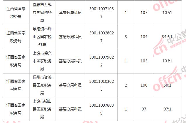 截止到4日16時,競爭比例的職位為國家統(tǒng)計局江西調(diào)查總隊國家統(tǒng)計局江西調(diào)查總隊宜春調(diào)查隊業(yè)務科科員一職,招錄1人,截止到4日16時通過人數(shù)為204人,位列第二的國家統(tǒng)計局江西調(diào)查總隊國家統(tǒng)計局江西調(diào)查總隊南昌調(diào)查隊農(nóng)商科科員一職,為153:1