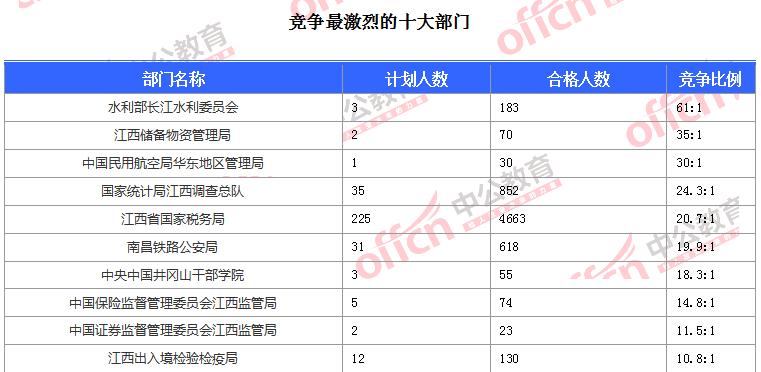 為幫助廣大考生更清晰的了解今日報名情況,中公網(wǎng)校整理了審核通過人數(shù)前十位的部門以及競爭比例最激烈的十大部門,供廣大考生參考: