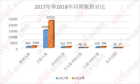 截至11月4日16時,據(jù)中公網(wǎng)校統(tǒng)計,2018國家公務員考試報名第六天,招錄職位中工作地點在湖北的職位報名總人數(shù)33738人,通過審核人數(shù)為22510人,比去年同期審核通過人數(shù)(14564人)增加7946人,815個職位中僅余21個職位無人報考,平均競爭比例為17:1。具體信息如下: