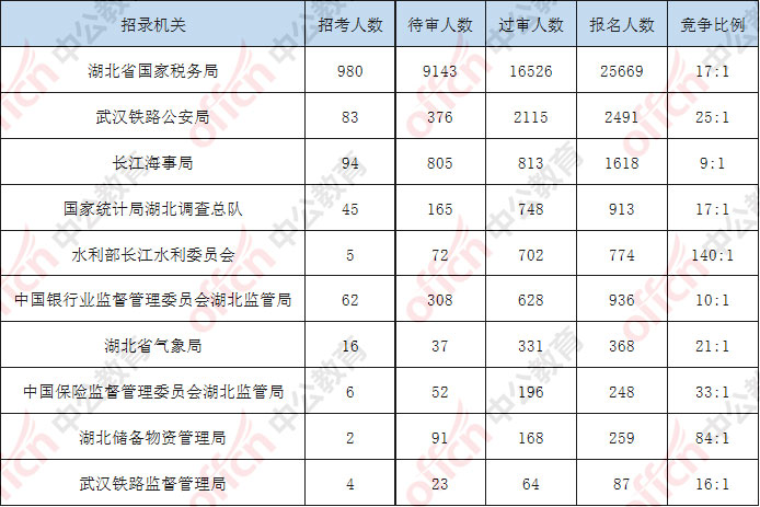 [4日16時]2018湖北國考報名人數(shù)分析:湖北33738人報名 22510人過審 無人報考僅21個