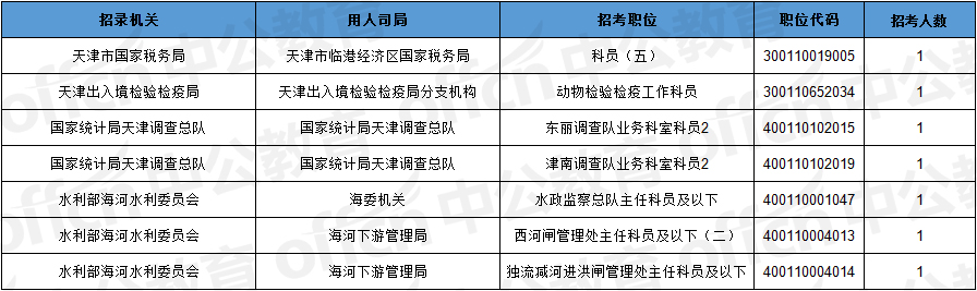 截止到5日16時,工作地點在天津的職位共有7個無人報考,占全部職位的3.3%。下圖是無人報考職位一覽表,中公網(wǎng)校專家建議廣大考生多關(guān)注一些較冷職位,避免激烈競爭,結(jié)合自身條件,找到屬于自己的職位。