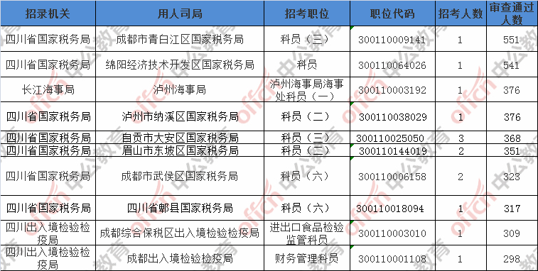 第六日報名通過審核人數(shù)前十的職位主要集四川省國家稅務(wù)局等部門,具體信息如下: