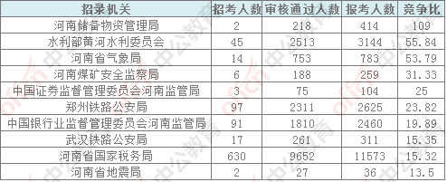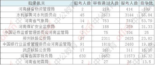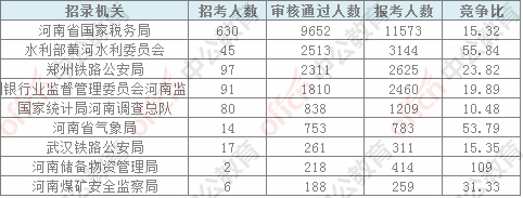 報(bào)名通過(guò)審核人數(shù)前十的職位主要集中在鄭州鐵路公安局、河南省氣象局、河南省國(guó)家稅務(wù)局,具體信息如下: