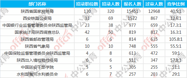 陜西國(guó)考報(bào)名人數(shù)最多的十大部門