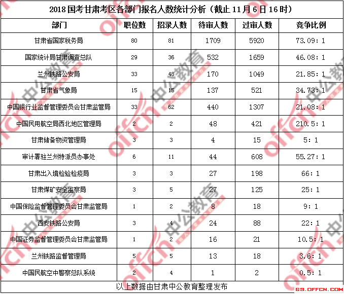 [11月6日16時(shí)]甘肅2018國考報(bào)名人數(shù)統(tǒng)計(jì):過審11970人 平均競(jìng)爭(zhēng)比例42.3:1