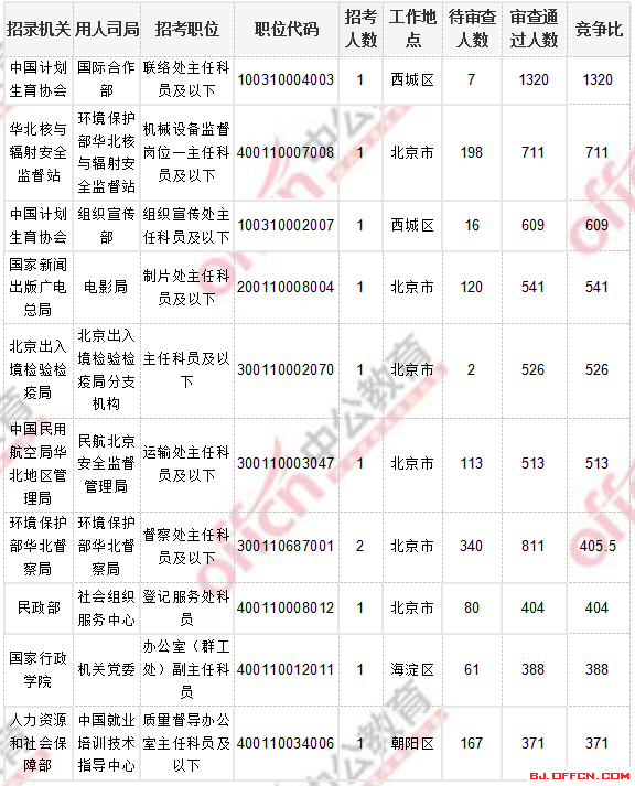 一、北京地區(qū)招錄大戶——國稅 競爭比25:1