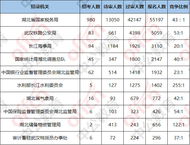 [7日16時(shí)]2018湖北國考報(bào)名人數(shù)分析:54874人過審 整體競爭比例41:1 無人報(bào)考僅6個(gè)