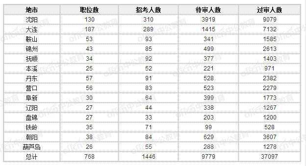 截至11月7日16時(shí):2018國(guó)考報(bào)名涉遼崗位通過(guò)審核人數(shù)達(dá)37097人,待審查人數(shù)為9779,21職位無(wú)人報(bào)考