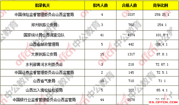 截至11月8日16時(shí),據(jù)中公網(wǎng)校統(tǒng)計(jì),國(guó)考職位中工作地點(diǎn)在山西的職位通過審核總?cè)藬?shù)為25795人,和昨天相比增加了6100人,與去年同期相比合格人數(shù)減少了2487人,截止目前共有5個(gè)職位無人報(bào)考,平均競(jìng)爭(zhēng)比例為48.58:1,和去年同期競(jìng)爭(zhēng)比增長(zhǎng)了5.79%。