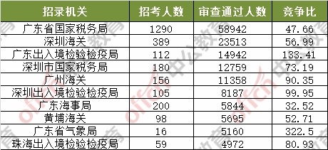 截止到8日17時30分,通過審核人數(shù)前三位的部門依次是:廣東省國家稅務局、深圳海關、廣東出入境檢驗檢疫局,三部門通過審核總人數(shù)達97397人,占通過審核總人數(shù)的55.7%。