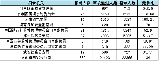 為幫助廣大考生更清晰的了解今日報(bào)名情況,中公網(wǎng)校整理了審核通過人數(shù)前十位的部門以及競爭比例最激烈的十個(gè)部門,供廣大考生參考: