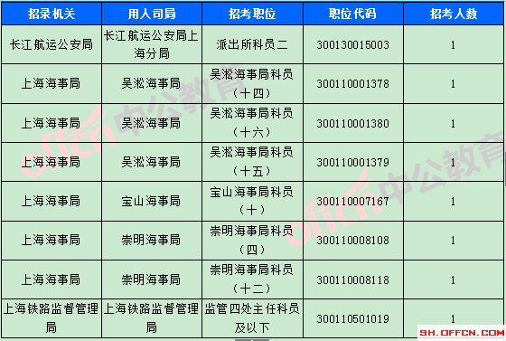 截止到8日17:30時(shí),工作地點(diǎn)在上海的職位共有8個(gè)無人報(bào)考,占全部職位的2.48%。下面是無人報(bào)考職位一覽表,上海中公網(wǎng)校專家建議廣大考生多關(guān)注一些較冷職位,避免激烈競爭,結(jié)合自身?xiàng)l件,找到屬于自己的職位。