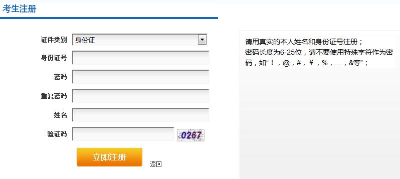 填寫注冊信息,包括“身份證號”、“密碼”、“重復(fù)密碼”、“姓名”、“驗(yàn)證碼”,點(diǎn)擊“立即注冊”。