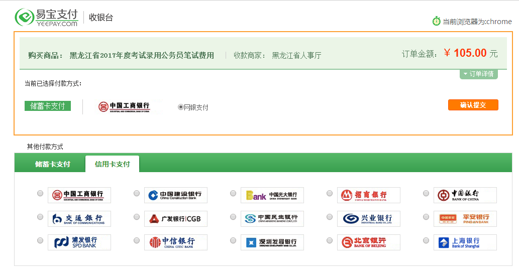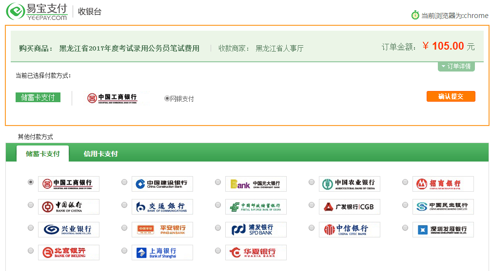 儲(chǔ)蓄卡選擇可支付的銀行。
