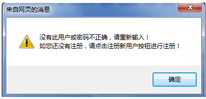 注:1、登錄時提示‘沒有此用戶或密碼不正確’如圖1-6,請考生確認是否注冊,如未注冊請先注冊,如果已注冊請確認輸入的密碼是否正確。