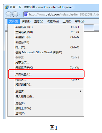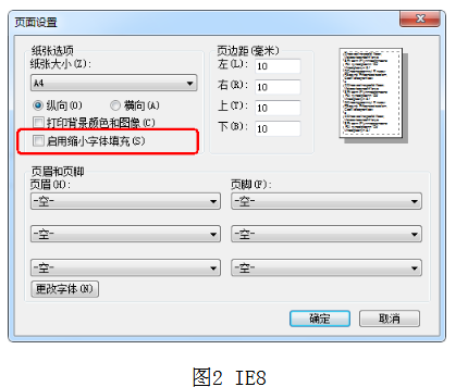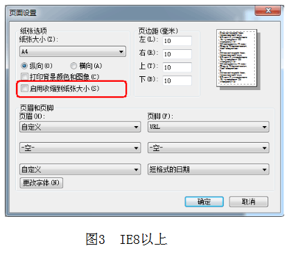1、使用IE瀏覽器打印時,請首先進(jìn)入瀏覽器菜單【文件】-【頁面設(shè)置】(圖1),將 “啟用縮小字體填充”(IE8,圖2)或“啟用收縮到紙張大小”(IE8以上,圖3)勾選項去掉后,點擊確定,然后再打印報名表或準(zhǔn)考證;