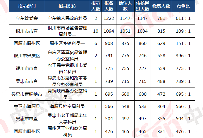 2018寧夏公務(wù)員考試報名人數(shù)統(tǒng)計(截止3月31日10:00)