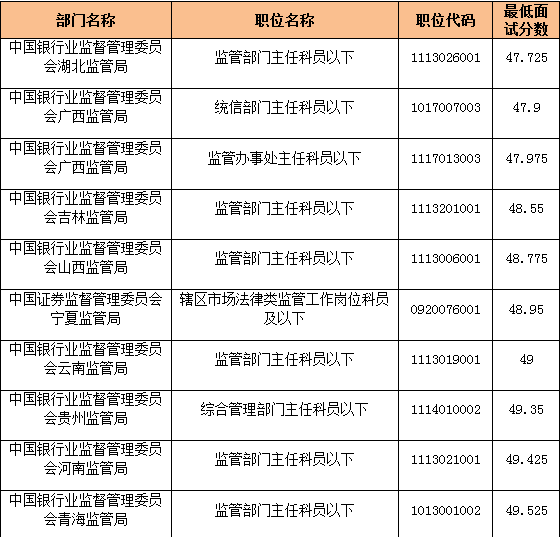 2014國家公務(wù)員考試分?jǐn)?shù)線最低十大職位