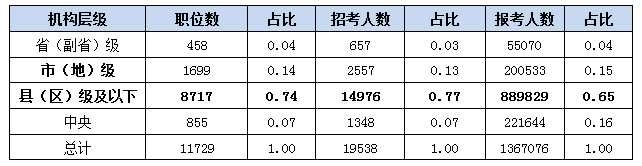 2014年國家公務(wù)員考試機構(gòu)層級招錄情況