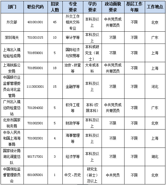 2015國家公務(wù)員考試報名十大推薦職位(10月16日)