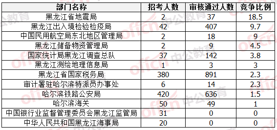 截至17日8時(shí),競(jìng)爭(zhēng)比例前三位的部門(mén)依次是:黑龍江省地震局、黑龍江出入境檢驗(yàn)檢疫局、中國(guó)民用航空局東北地區(qū)管理局。